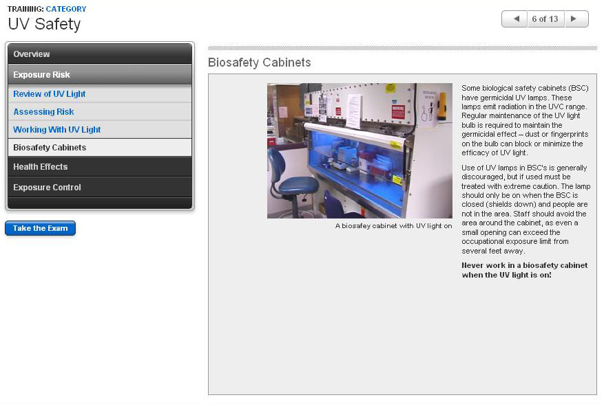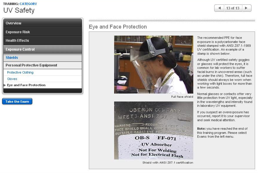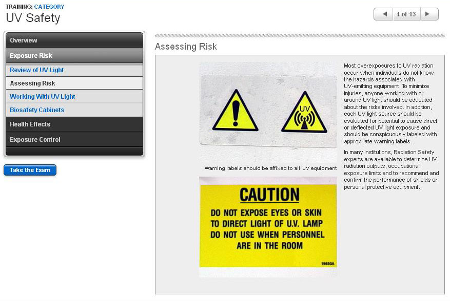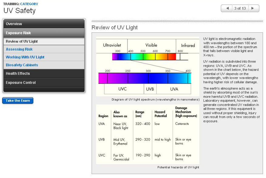 The hazards associated with UV light in the clinical laboratory and the proper use of safety equipment to avoid exposure