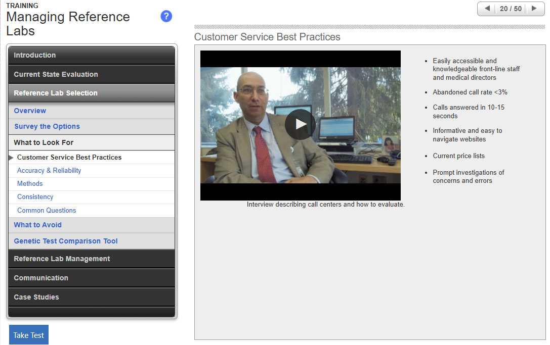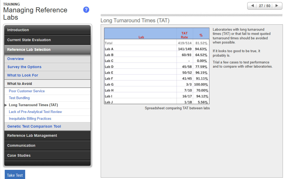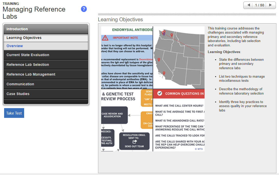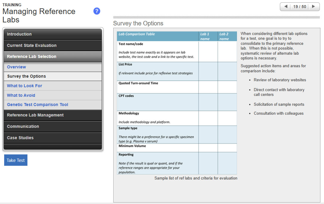 - Identify three key practices to assess quality in your reference labs.