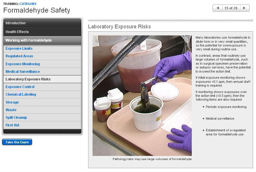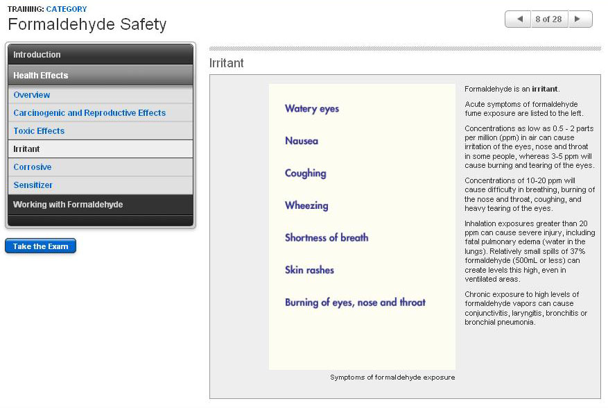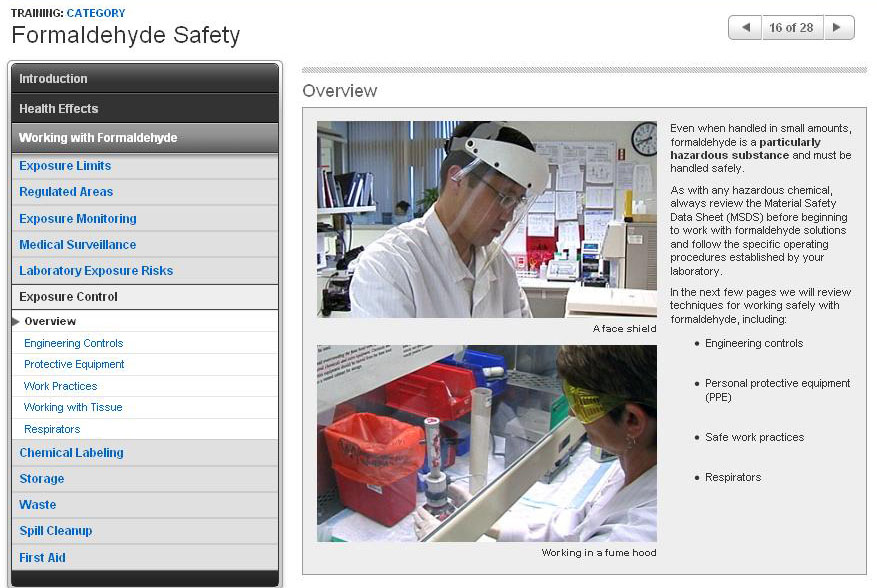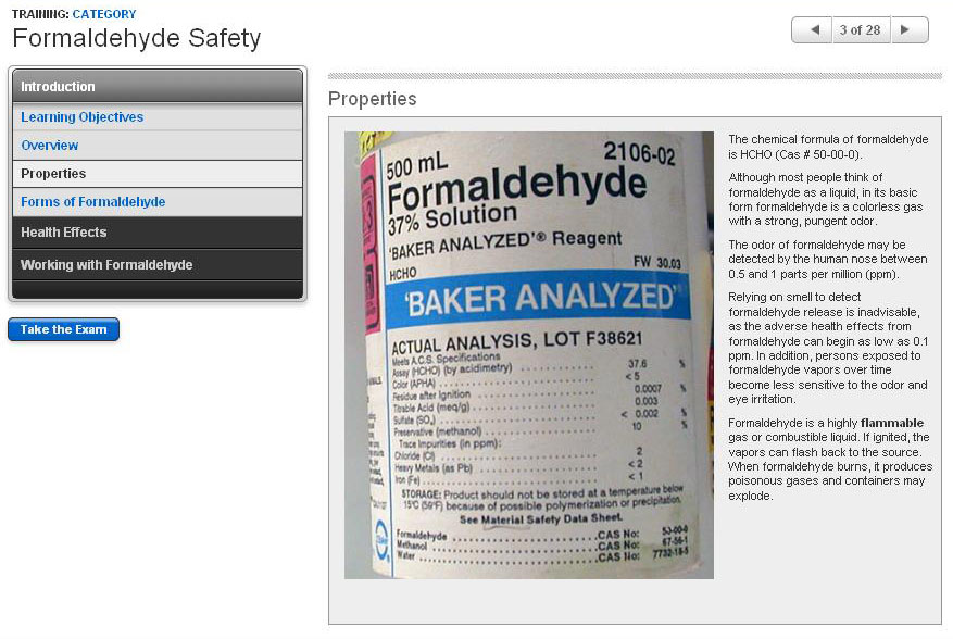 Proper handling, storage, and disposal of Formaldehyde, and methods for responding to spills and exposure.