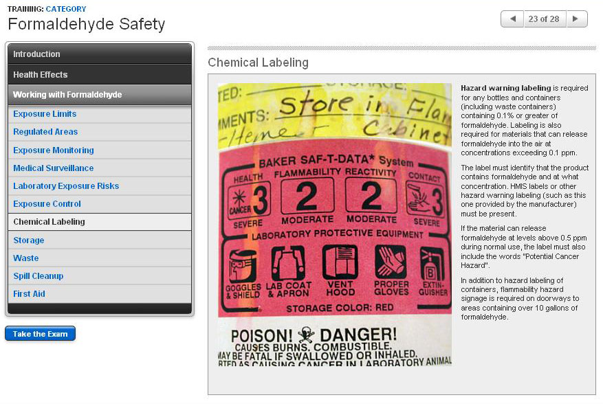 - Describe an appropriate label for formaldehyde-containing solutions.
