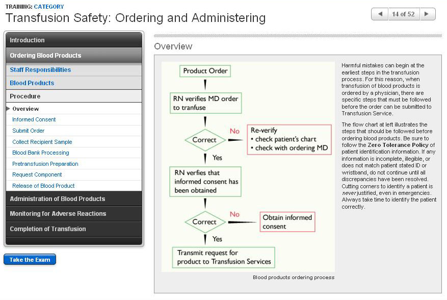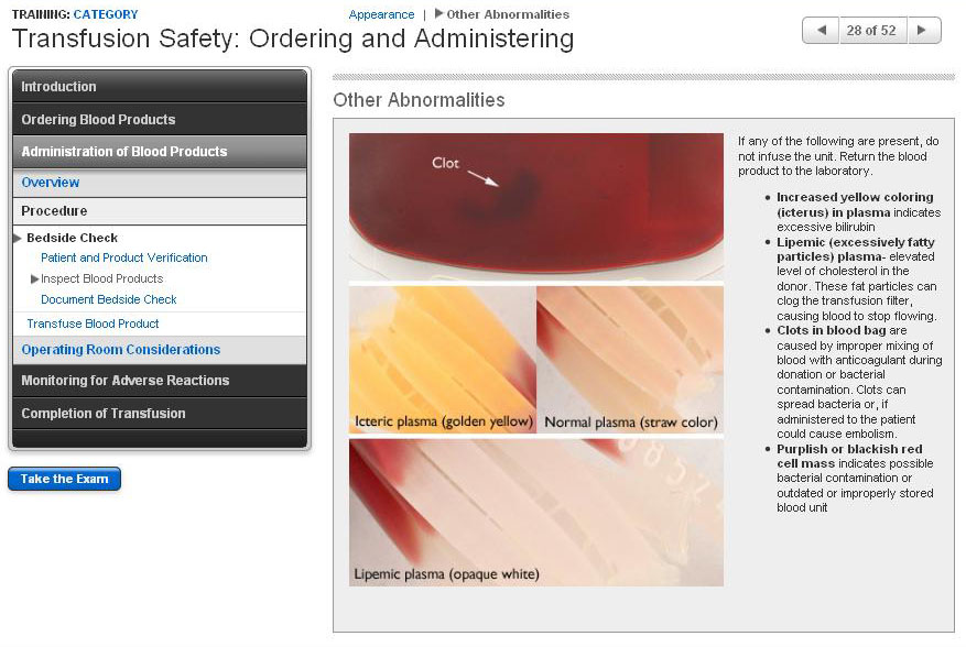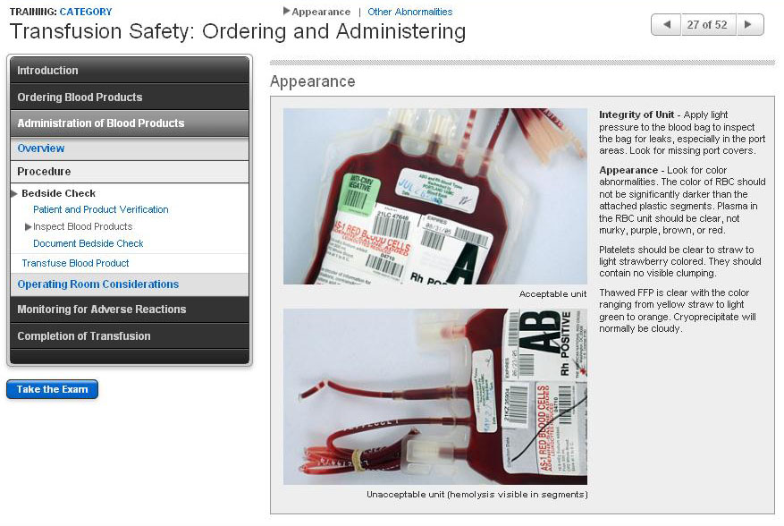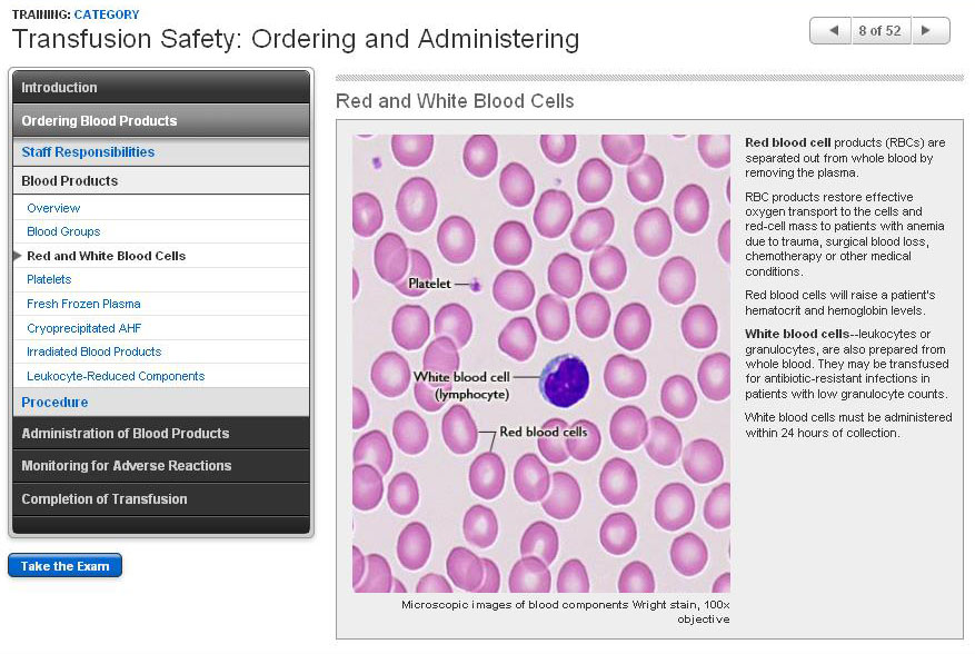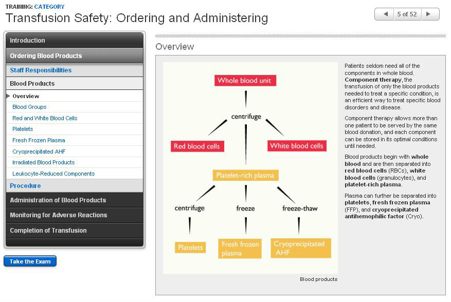 Patient safety in ordering and administering of blood products. Topics include: patient verification, blood product inspection, and patient monitoring during the transfusion.