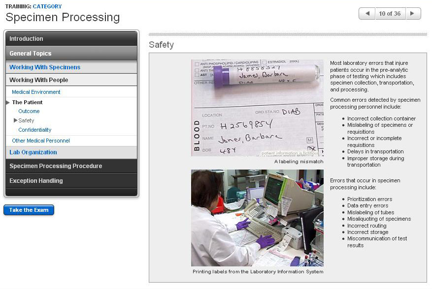 - Describe 2 common safety problems for specimen processing personnel and how to avoid these problems.