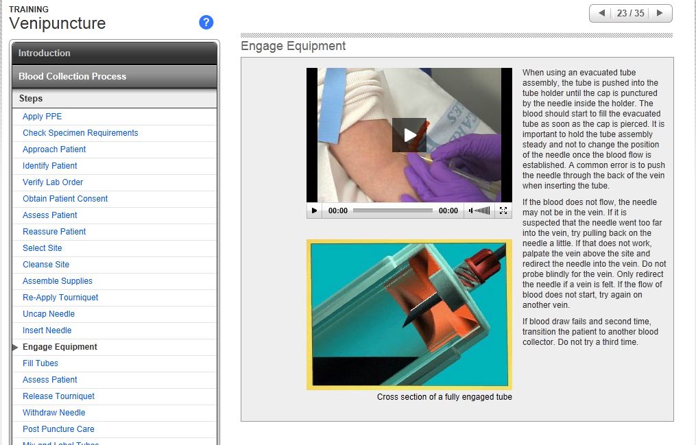 Detailed descriptions of each step in the blood collection process.